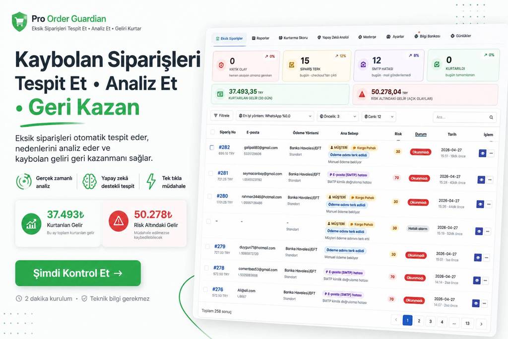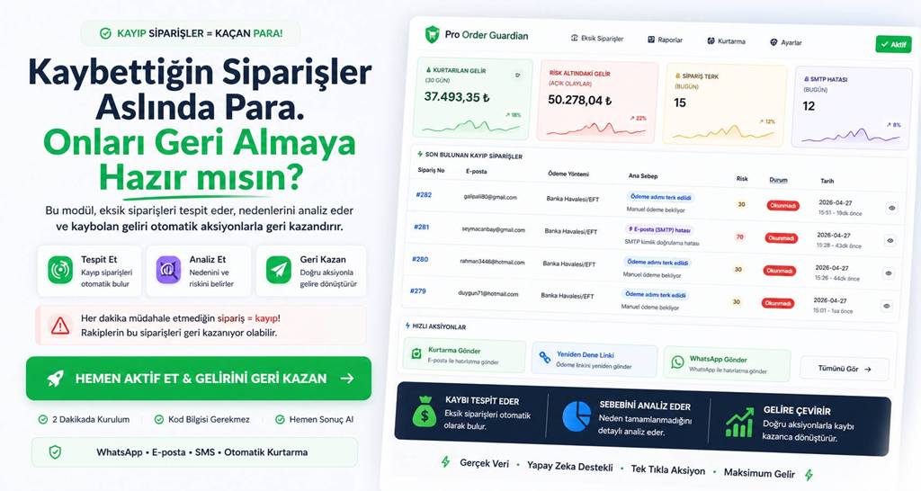 Pro Order Guardian – OpenCart Eksik Sipariş Analiz ve Kurtarma Modülü